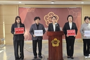[경기헤드라인=문수철 기자] 수원특례시의회 국민의힘 여성의원들은 24일 오전 의회 세미나실에서 여성 폄하 발언한 더불어민주당 소속 최강욱 의원의 부도덕한 행동과 망언에 대해 강력한 처벌을 요구한다고 밝혔다. 이날 국미순 의원은 “더불어민주당 소속 최강욱 전 의원이 지난 19일 더불어민주당 민형배 의원의 출판기념회에서 ‘암컷들이 나와서 설치고 이러는 건 잘 없다’라며 여성 폄하 발언을 쏟아냈다”고 말했다. 이어 “입에 담기도 민망하고 저급한 원색적인 발언을 공개적인 자리에서 아무렇지 않게 내뱉었으며, 현장에 있는 의원들조차 해당 발언의 심각성을 전혀 깨닫지 못한 채 동조하며 행사를 이어갔다. 그들의 평소 갖고 있는 성인지 감수성이 얼마나 바닥인지 가감 없이 보여주는 대목이다”며 비판의 목소리를 높였다. 더해 더불어민주당 여성의원들에게도 “그 동안 소리 높여 여성 권익을 외치더니 ‘선택적 침묵’으로 함구하고 있다며, 이로 인해 대한민국 국민들이 상처받고 있다는 것을 자각하길 바란다”고 말했다. 특히, 시의회 국민의힘 여성의원들을 대표해 이재선 의원(매탄1·2·3·4), 유준숙 의원(행궁, 지, 우만1·2, 인계), 국미순 의원(매교, 매산, 고등, 화서1·2),