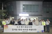 [경기헤드라인=김윤종 기자] 동두천시의회는 지난 1일 추석 명절을 맞아 방범기동순찰연합대(연합대장 권태연)와 모범운전자회를 방문해 위문품을 전달하고 감사의 마음을 전했다. 이날 방문에는 김승호 의장, 의원 그리고 관련 공무원들이 함께했으며 평소 지역 안전을 위해 헌신하는 대원들과 회원들을 격려하고 애로사항을 청취하는 시간을 가졌다. 방범기동순찰연합대는 관내 취약 지역 순찰을 통해 범죄 예방과 주민 안전에 힘쓰고 있으며, 모범운전자회는 교통질서 확립과 교통사고 예방 활동에 앞장서고 있다. 김승호 동두천시의회 의장은 “시민들의 안전하고 편안한 명절을 위해 묵묵히 애써주시는 분들의 노고에 깊이 감사드린다”며 “앞으로도 행정에서 적극 지원해 안전한 도시, 행복한 동두천을 만드는 데 최선을 다하겠다”고 말했다.