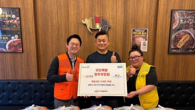 [경기헤드라인=김윤종 기자] 지난 9일, 양주시무한돌봄희망팀은 양주시상인회협동조합의 연계로‘귀한족발 옥정점’을 통해 족발 10세트를 취약계층 및 위기가구에게 전달했다. 양주시상인회협동조합 회원 업체인‘귀한 족발 양주옥정점’박창숙 대표는 최근 경기 침체로 어려움이 크기만 오히려 이런 시기 취약계층 분들은 외식 한번을 하기가 더 어려울꺼라는 생각에 이번 지원을 준비했다고 말했다. 양주시상인회협동조합(조합장 윤성희)은 앞서 2026년 설 명절을 맞아 떡만둣국 나눔 행사를 진행하는 등 양주시무한돌봄희망팀과 협력하여 아동 대상 생일 축하 지원사업과 취약 가구 및 자립을 준비하는 청년들을 위한 도시락 지원사업도 추진할 계획이다. 양주시무한돌봄희망팀 나규필 팀장은 족발세트 후원 지원은 처음이라며 비교적 단가가 높아 취약계층의 경우 쉽게 접근이 어려운데 가족 단위 가구에 지원할 예정으로 매우 만족도가 높을 것이라고 말했다. 한편, 양주시상인회협동조합은 매년 연탄 지원 행사, 떡국 나눔 행사, 삼계탕 나눔 행사를 비롯하여 상인회 소속 상점의 후원을 독려하여 양주시무한돌봄희망팀을 통해 위기가구와 취약계층에게 다양한