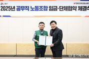 [경기헤드라인=문수철 기자] 시흥시는 지난 11월 26일 시청 다슬방에서 교섭대표 노동조합인 전국민주연합노동조합 시흥지부와 2025년도 공무직 임금ㆍ단체협약을 체결했다. 올해 교섭은 지난 9월 10일 상견례를 시작으로 약 2개월간 총 7차례의 실무교섭을 통해 진행됐으며, 상호 입장을 조율하기 위한 세부 논의를 거쳐 임금 협약과 단체협약 내용이 확정됐다. 임금 및 단체협약에는 ▲2024년 임금 총액 대비 3% 인상 ▲민원 업무 수당 및 위험 근무수당 신설 ▲임금 테이블 통합(사무보조 직군과 영양사ㆍ의료급여 등 전문ㆍ단순 노무 직군을 ‘노무원’으로 통합) ▲경력 인정 기준 신설 ▲휴직 사유 신설 등 다양한 개선 사항이 포함됐다. 이번 합의는 공무직 근로자의 복리 증진과 근무 여건 향상을 위해 노사 양측이 지속적으로 의견을 조율하며 마련한 것으로, 안정적이고 효율적인 근무 환경을 만드는 데 중요한 기반이 될 것으로 기대된다. 김기범 전국민주연합노동조합 시흥지부장은 “같은 시흥시 직원으로서 상생의 자세로 한 방향을 바라볼 수 있도록 협력해 준 시흥시에 감사드린다”라며, “이번 협약을 통해 조합원들이 더 안