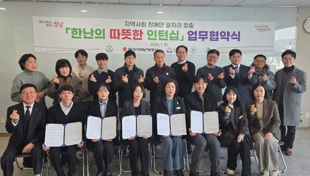 [경기헤드라인=문수철 기자] 성남시는 한국지역난방공사, 직업재활시설협의회, 특수학교와 손잡고 발달장애인 26명 대상 인턴십과 취업 연계 프로젝트를 추진한다. 성남시는 1월 30일 오후 3시 30분 분당우리교회 드림센터에서 김순신 성남시 복지국장, 송은영 한국지역난방공사 분당지사장, 임주현 성남시 직업재활시설협의회장, 조민숙 혜은학교 부장 교사, 김대중 성은학교 교사 등이 참석한 가운데 ‘따뜻한 인턴십 업무 협약’을 체결했다. 협약에 따라 성남시는 지역 내 특수학교인 성은·혜은학교에서 대상자를 추천받아 다음 달부터 오는 12월까지 성남시장애인복합사업장(중고 물품 수집·판매), 성남시 보호작업장(쇼핑백 제조업), 가나안 근로복지관(프린터 재생토너 제조업), 하나테크(방역·소독 업체), 더나은 보호작업장(커피 제조·판매) 등 9개 시설에서 수습사원으로 근무할 수 있도록 지원한다. 한국지역난방공사는 발달장애인에게 인턴십 근무 첫 달에 40만원의 훈련 수당을 지급한다. 인턴십 종료 후에는 성남시 직업재활시설협의회가 참여자의 적성과 훈련 성과를 바탕으로 관련 분야 일자리 취업을 연계·알선한다. 이