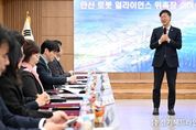 [경기헤드라인=문수철 기자] 안산시가 대한민국 로봇산업 중심 도시로 도약하기 위해 ‘안산시 로봇산업 육성 및 지원에 관한 조례’를 제정·시행하며 로봇도시 조성에 속도를 내고 있다. 시는 지난 27일 시청 제1회의실에서 지자체 관계자와 대학, 로봇 유관기관, 로봇 수요기업 전문가 등으로 구성된 실무 중심 협의체 ‘안산 로봇얼라이언스’ 위촉식을 열고 제1회 정기회의를 개최했다고 28일 밝혔다. 이날 출범한 ‘안산 로봇얼라이언스’는 기존 실무협의체를 확대·개편한 조직으로, 로봇 수요처와 중앙부처 유관기관까지 참여 범위를 넓혀 실효성을 강화했다. 안산사이언스밸리(ASV) 유관기관을 비롯해 안산상공회의소, 스마트허브경영자협회, 스마트허브여성경영자협의회 등 수요기관과 한국로봇산업진흥원, 한국로봇산업협회 등 전국 단위 기관 전문가 20여 명이 위원으로 참여한다. 위촉식 이후 진행된 회의에서는 얼라이언스를 이끌어갈 회장과 부회장을 호선으로 선출했다. 회장에는 박태준위원, 부회장에는 박상민위원이 각각 선출됐다. 이어 시가 수립한 ‘로봇산업 육성 기본계획’을 공유하고, 단계별 실행 전략과 협력 방안을 논의했다. 위
