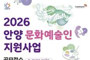 [경기헤드라인=문수철 기자] 안양문화예술재단은 지역 예술인의 창작활동을 지원하고 문화예술 진흥을 도모하기 위한 ‘2026년 안양 문화예술인 지원사업’ 희망자를 오는 16일 17시까지 공개 모집한다. 이번 공모는 안양에서 활동하는 예술인과 예술단체를 대상으로 하며, 안정적인 창작환경 조성과 더불어 경기도 내 우수 예술인의 안양 유입을 통해 시민들에게 보다 풍성한 문화예술 향유 기회를 제공하는 것을 목적으로 한다. 총 사업 규모는 3억 2,630만원이며, 이 중 지원금은 2억 7,400만원이다. 특히 올해는 ‘정산 간소화’ 제도를 시범 도입하여 예술인의 행정부담을 줄이고 창작활동에 더욱 집중할 수 있는 환경을 조성할 계획이다. 재단 관계자는 “이번 지원사업을 통해 지역 예술생태계가 활성화되고, 시민들의 문화향유 기회가 확대됨으로써, 안양이 보다 풍요로운 문화도시로 도약하길 기대한다”고 밝혔다.