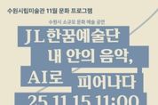 [경기헤드라인=문수철 기자] 경기도 수원시립미술관은 11월 시민들의 문화향유 기회 확대를 위한 다양한 문화예술 프로그램을 개최한다. 11월 15일 11시에는 성인 발달장애인 문화예술 전문단체인 제이엘(JL)한꿈예술단이 참여해 '내 안의 음악, AI로 피어나다'를 주제로 공연을 선보인다. 이번 공연은 2025 하반기 소규모 문화예술행사 지원사업으로 선정되어 총 3개의 챕터로 운영된다. 첫 번째 챕터는 '걱정말아요 그대', '다 잘될거야' 등의 가요, 동요 등을 성악으로, 두 번째 챕터는 심포니 악기로 히사이시 조의 '바다가 보이는 마을' 등을 연주한다. 마지막 챕터는 합창과 오케스트라가 함께 '내 나라 내 겨레', '함께 나가자' 및 발달장애인들의 경험을 담아 만든 AI 창작곡 '좋아'를 연주하며 마무리한다 11월 22일 오후 2시에는 경기아트센터 주관 '거리로 나온 예술' 선정 뮤지션인 5인조 클래식 그룹 '투더레블의 브라스와 피아노: 음악을 거닐다' 공연이 개최된다. 투더레블은 금, 관악 실내악의 경계를 넓히고자 클래식 음악을 기반으로 다채로운 레퍼토리와 창의적인 해석을 통해 새로운 음악적 가능성을 탐구한다. 이번 공연에