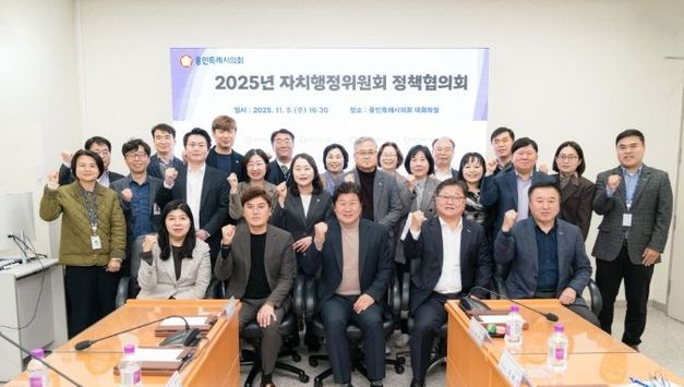 [경기헤드라인=문수철 기자] 용인특례시의회 자치행정위원회는 5일 시의회 대회의실에서 내년도 시정 주요 현안을 공유하고 정책 방향을 논의하기 위한 정책협의회를 실시했다. 이번 협의회에는 자치행정위원회 소속 의원들과 위원회 소관 시청 실·국 부서장 등이 참석했다. 이날 위원들은 각 부서로부터 시정 주요 현안과 내년 중점 추진사업의 추진 방향에 대해 보고받고, 정책의 실효성과 시민 체감도를 높이기 위한 다양한 의견을 교환했다. 주요 논의사항으로는 ▲주민 생활과 밀접한 행정서비스 개선 방안 ▲공공시설 관리 효율화와 재정 건전성 강화 ▲공직자 역량 강화 및 조직문화 개선 등이 다뤄졌다. 의원들은 집행부에 각 부서의 주요 사업이 시민 삶의 질 향상으로 이어질 수 있도록 정책 간 연계와 협업을 강화할 것을 당부했다. 김진석 위원장은 “정책협의회는 의회와 집행부가 함께 고민하며 시민이 체감할 수 있는 정책을 만들어가는 자리”라며 “오늘 논의한 내용이 시민 삶의 질을 높이는 실질적 성과로 이어질 수 있도록 집행부와 긴밀한 협력체계를 유지하겠다”고 말했다. 자치행정위원회는 이번 협의회를 계기