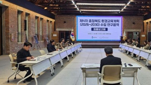 [경기헤드라인=문수철 기자] 충북도는 8일 도청 대회의실에서 ‘제4차 충청북도 환경교육계획(2026~2030) 수립 연구용역 최종 보고회’를 개최했다. 제4차 충청북도 환경교육계획은 2026년부터 2030년까지 향후 5년간 적용될 충북 맞춤형 환경교육 실천계획과 추진 로드맵을 마련하는 것으로, 충북의 기후‧사회‧환경 및 여건 변화를 반영한 중장기 계획이다. 이번 연구용역은 2024년 6월 착수보고회를 시작으로, 도민 환경인식 및 교육수요 조사 의견수렴(6.11~6.20, 700명), 시군‧현장‧민간단체 등 이해관계자 대상 설문조사(7~8월), 전문가 자문회의(9월, 12월), 공청회(12.18.) 등 다각적인 의견 수렴을 거쳐 진행됐다. 최종 보고회에서는 도‧ 시군 환경교육담당자와 전문가 등 20여명이 참석해, 환경교육도시 충청북도가 도민 참여와 함께 탄소중립으로 나아가기 위한 환경교육 로드맵에 대해 다양한 의견을 나눴다. 보고회에서는 ‘참여로 함께 만드는 탄소중립 전환, 환경교육도시 충청북도’라는 비전을 토대로 △언제, 어디서나, 누구나 환경교육을 받을 수 있는 충북(기반) △학습과 참여로 탄