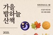 [경기헤드라인=문수철 기자] 의정부과학도서관은 10월 30일부터 11월 1일까지 의정부천문대에서 특별 관측 행사 ‘가을 밤하늘 산책’을 운영한다. 이번 행사는 깊어가는 가을밤, 시민들이 천체 관측을 통해 자연과 과학의 아름다움을 체험할 수 있도록 마련했다. 행사는 오후 7시부터 9시까지 진행된다. 전문 해설과 함께 실제 관측을 체험할 수 있는 참여형 행사로 ▲달과 토성 관측 ▲천문우주 영상물 시청 ▲전시실 체험 ▲소원카드 달기 등으로 구성된다. 참여자들은 달과 토성의 고리를 직접 관측하고, 소원카드에 각자의 바람을 담아 별빛 아래에 걸어보는 체험도 즐길 수 있다. 행사는 과학문화에 대한 시민의 관심을 높이고 가족 단위의 참여를 확대하기 위해 무료로 진행한다. 별도의 사전 접수 없이 행사 당일 현장에서 참여할 수 있다. 과학도서관 관계자는 “의정부천문대가 과학과 자연이 어우러진 문화공간으로 자리잡을 수 있도록 앞으로도 다양한 프로그램을 운영할 것”이라며 “이번 특별 관측을 통해 가족과 함께 밤하늘을 바라보며 뜻깊은 시간을 보내길 바란다”고 말했다.