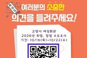 [경기헤드라인=김홍량 기자] 고양특례시 여성회관은 시민의 직무 역량 강화와 성공적인 취·창업 연계를 지원하기 위해 ‘2026년 취·창업 특강 수요조사’를 실시한다. 이번 조사는 고양시민을 대상으로 22일 오후 5시까지 진행되며, 온라인 설문을 통해 참여할 수 있다. 설문은 QR코드를 통해 접속 가능하며, 취업과 창업 분야에 대한 실질적인 수요를 파악하는 데 중점을 둔다. 조사 항목에는 성별, 연령대, 거주 지역 등 기본 정보뿐 아니라, 기존 특강 참여 경험, 향후 참여 목표, 희망 강좌 주제 등이 포함된다. 특히 창업 희망자를 위한 특강 참여 의향과 구체적인 주제 제안도 함께 수렴할 예정이다. 고양시 여성회관은 이번 수요조사 결과를 바탕으로 2026년 특강 교육과정을 기획하고, 실습 및 자격 연계 중심의 프로그램을 통해 시민의 직무 역량을 강화할 계획이다. 또한 채용 정보 제공, 진로 상담, 이력서·면접 컨설팅 등 실질적인 취업 지원과 더불어, 지속적인 교류를 위한 커뮤니티 활동도 함께 운영할 예정이다. 여성회관 관계자는 “시민의 목소리를 반영한 맞춤형 교육 프로그램을 통해 교육 만족도