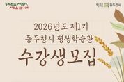 [경기헤드라인=김윤종 기자] 동두천시 평생학습관은 시민의 지속적인 학습 기회 확대와 문화·여가 향유 증진을 위해 2026년 제1기 정규 및 특강 프로그램 수강생을 2025년 12월 8일부터 26일까지 모집한다고 밝혔다. 교육기간은 2026년 1월 5일부터 4월 25일까지(16주)이며, 강좌별 일정은 상이하다. 총 75개 강좌, 1,556명 규모로 개설되는 이번 1기 프로그램은 시민의 다양한 학습 수요를 반영해 ▲자격증 대비 ▲기술·기능 ▲문화·건강 ▲시니어 프로그램 ▲시민정보화 ▲요리 ▲중장년 행복센터 ▲특강 등 8개 분야로 구성됐다. 2026년 1기 강좌는 평생학습관 홈페이지(edu.ddc.go.kr)를 통해 온라인으로만 접수할 수 있으며, 19세 이상 동두천시민 또는 동두천시에 소재한 직장 재직자라면 신청 가능하다. 강좌마다 접수 시작일이 다르고, 일부 강좌는 중복 접수나 개수 제한이 있으므로 신청 전에 강좌별 안내를 반드시 확인해야 한다. 또한 국가유공자, 기초생활수급자, 등록장애인, 다자녀 가정 등은 수강료 면제 혜택이 적용되며, 증빙서류 제출이 필요하다. 동두천시