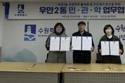 [경기헤드라인=문수철 기자] 수원시 팔달구 우만2동 주민자치회는 지난 10일, 우만2동‧동수원요리학원과 함께 협력사업 추진을 위한 민‧관‧학 협약을 체결했다. 이번 행사는 3개 기관이 함께 우만2동의 주민자치 활성화 및 주민 복리증진을 위한 사업을 공동으로 추진하기 위해 마련됐다. 이날 협약에 따라 각 기관은 각자 보유한 자원을 적극 공유하고, 우만2동 주민의 생활 편의 제고 및 지역공동체 형성을 위해 폭넓게 협력할 예정이다. 전문 교육기관의 인프라와 인력을 활용해 주민자치센터 프로그램의 품질을 높이는 한편, 민간 기업의 지역사회 환원을 활성화하는 데 일조할 수 있을 것으로 기대된다. 윤도현 우만2동 주민자치회장은 “우만2동 주민자치회의 첫 민‧관‧학 협력사업을 추진하게 되어 기쁘다”며, “동 청사로 한정되어 있던 주민자치센터의 공간적 한계를 극복하고 한 단계 성장하는 계기가 될 것이다”라고 기대감을 내비쳤다. 최영문 우만2동장은 “주민자치회와 민간학원이 함께 지역의 발전을 위해 협력해주심에 감사하다”며, “행정기관으로서 앞으로도 다양한 협업 관계를 구축하고, 적극적인 지원을 아끼지 않