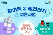 [경기헤드라인=김홍량 기자] 파주시는 올바른 분리배출 및 자원의 재활용을 확산하고자 종이팩 및 폐건전지 교환 사업을 운영 중이라고 밝혔다. 종이팩은 화장지, 종이수건(타월) 등으로 재활용되는 천연 펄프로 일반 종이와 함께 배출되면 재활용이 어려워진다. 또한, 폐건전지는 수은, 니켈 등 중금속을 포함하고 있어 일반 쓰레기로 배출할 경우 환경오염의 원인이 될 수 있어 분리배출이 더욱 중요하다. 이에 파주시는 유용한 폐자원의 수거율을 높이고 시민들의 참여를 유도하기 위해 일정 기준 이상 종이팩과 폐건전지를 모아 가져오는 시민에게 종량제봉투(10L)를 교환해 준다. 종이팩은 물로 헹궈 펼쳐 말린 후 끈으로 묶어서, 폐건전지는 비닐봉지나 상자 등에 담아 읍면동 행정복지센터나 파주시자원봉사센터로 가져오면 된다. 교환 기준은 종이팩 1kg 또는 폐건전지 50개당 종량제봉투(10L) 2장이며, 1인당 하루 8장(연간 50장)으로 제한한다. 심재우 자원순환과장은 “종이팩·폐건전지 교환사업은 시민들의 작은 실천이 환경을 지키는 큰 힘이 될 수 있다”라며 “자원순환 문화 정착 및 재활용률을 높이는 데에 시민들의 적극적