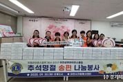 [경기헤드라인=정현수 기자] 이천시 자원봉사센터는 지난 9월 30일 이천설봉라이온스클럽과 함께 사랑의 송편 나눔 행사를 개최하며 ‘2025년 추석맞이 집중 자원봉사 주간’에 동참했다. 설봉라이온스클럽은 매년 추석 명절을 즈음하여 송편 나눔 활동을 진행하고 있으며 이번 나눔은 이천시재가노인복지센터에서 돌보고 있는 어르신 50가구에 송편이 담긴 따뜻한 꾸러미를 준비해 전달하며 명절의 온정을 나눴다. 유미영 회장은 “어르신들의 추석 명절이 행복하길 바라는 마음으로, 작지만 정성을 다해 송편을 준비하여 전달했다”라며 “앞으로도 우리 회원들은 지역사회와 함께하는 봉사 및 나눔 활동을 꾸준하게 이어갈 계획”이라고 밝혔다. 이미선 센터장은 “따뜻한 정을 나눠주신 이천설봉라이온스클럽 회원들께 감사드린다”라며 “시민이 공감하는 ‘온기나눔’을 통해 더 많은 이웃이 따뜻한 명절을 보내길 바란다”라고 전했다.