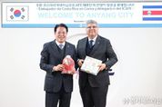 [경기헤드라인=문수철 기자] 안양시는 최대호 시장이 지난 17일 오전 11시40분 안양시청 3층 접견실에서 호르헤 엔리케 발레리오 에르난데스 주한코스타리카 대사와 코스타리카 커피 산업을 총괄하는 공식 연구·관리 기관인 코스타리카 커피연구소(ICAFE) 대표단을 접견하고, 양국 지방정부 간 실질적 교류 확대 방안을 논의했다고 18일 밝혔다. 이번 접견은 지난 7월 말 최대호 안양시장이 전국사회연대경제지방정부협의회 소속 지자체장들과 함께 코스타리카를 방문해 스테판 브루너 제1부통령, 호르헤 발레리오 주한코스타리카 대사 등 정부 관계자와 만나 지속가능한 지역발전과 상생 경제 실현을 위한 정책을 논의한 데 따른 후속 교류 일정이다. 이날 최대호 시장은 환영 인사에서 “한국과 코스타리카의 수교 63주년이자 코스타리카 독립 204주년을 맞는 뜻깊은 해에 이렇게 다시 만나게 되어 더욱 의미가 깊다”며 “지리적으로 멀리 떨어져 있지만 상호 존중과 신뢰를 바탕으로 동반자적 협력을 이어가자”고 강조했다. 이에 주한코스타리카 대사는 안양시의 따뜻한 환대에 감사를 표하며 “코스타리카와 한국 양국 관계가 더욱 공고해지는 만큼, 안양시