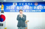 [경기헤드라인=문수철 기자] 성남시의회는 2일 중원구 산성대로 소재 루미에르 애비뉴에서 열린 재향군인회‘2025년 참전어르신 위로잔치’에 참석했다. 이번 행사는 국가를 위해 헌신한 참전유공자들의 공헌을 예우하고 감사의 마음을 전하기 위해 마련됐다. 이날 행사에서는 참전어르신들을 위한 식사 대접과 함께 위로 공연, 소통의 시간이 이어지며 훈훈한 분위기가 펼쳐졌다. 참석자들은 참전유공자들의 노고에 깊은 감사의 뜻을 전하며 건강과 안녕을 기원했다. 안광림 부의장은“대한민국의 자유와 평화는 참전용사분들의 헌신 속에서 지켜졌다”며“성남시의회도 어르신들의 명예와 복지가 더욱 두터워질 수 있도록 지속적으로 관심을 기울이겠다”고 말했다.