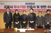 [경기헤드라인=문수철 기자] 군포시는 17일 시청 3층 중회의실에서 ‘2025년 군포시 우수기업 인증서 및 현판 수여식’을 열고 5개 우수기업에 인증서와 현판을 수여했다. ‘우수기업 선정사업’은 2022년부터 시작하여 올해 4번째로 추진하는 사업으로 일자리 창출, 세수 증대 등 지역경제 활성화에 기여한 기업을 선정하여 인센티브를 부여하는 사업이다. 선정된 우수기업은 인증기간(3년) 동안 군포시 중소기업 육성자금 지원 시 추가 이차보전, 군포시 관내 공영주차장 이용 시 주차요금 감면, 협약병원 의료비 지원 등의 인센티브가 부여된다. 하은호 군포시장은 “어려운 경제 상황 속 관내 우수한 기업에 활력을 불어넣기 위한 우수기업 선정사업에 관심 가져주심에 감사드리며, 앞으로도 기업지원 사업을 다각화하여 기업 경영하기 좋은 환경을 만들겠다”고 말했다. 올해 선정된 군포시 우수기업은 △(주)아이씨에이치 △㈜지비티코리아 △주식회사예선테크 △듀라텍 주식회사 △㈜트리플닷 으로 총 5개 기업이다.