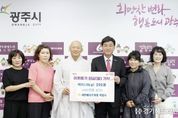 [경기헤드라인=정현수 기자] 대한불교 조계종 국청사는 지난 29일 추석을 앞두고 지역 내 어려운 이웃을 돕기 위해 백미 300포(4㎏, 435만 원 상당)를 광주시에 기탁했다. 이날 기탁식에는 주지 서호 스님을 비롯한 국청사 관계자들이 참석했으며 전달된 백미는 광주시를 통해 지역 내 저소득층과 복지 사각지대 가구에 고루 배분될 예정이다. 서호 주지 스님은 “작은 정성이지만 이 쌀이 명절을 맞이한 어려운 이웃들에게 따뜻한 힘이 되길 바란다”며 “앞으로도 지역사회와 함께 나눔을 실천하는 국청사가 되겠다”고 밝혔다. 이에 대해 방세환 시장은 “추석을 맞아 따뜻한 마음을 나눠주신 국청사에 깊이 감사드린다”며 “기탁받은 백미는 꼭 필요한 분들에게 소중히 전달하겠다”고 말했다. 한편, 국청사는 지난 4월에도 백미 400포(4㎏)를 광주시에 기탁하는 등 꾸준한 이웃사랑을 실천하며 지역사회에 귀감이 되고 있다.