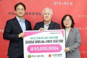 [경기헤드라인=김홍량 기자] 고양특례시는 24일, 고양시 덕양구 창릉동에 소재한 1.2.3(원투쓰리) 골프클럽에서 어려운 이웃을 위한 사랑의 성금 5천만 원을 전달했다고 밝혔다. 2021년 고양시 1호 나눔명문기업으로 가입한 1.2.3 골프클럽은 매년 어려운 이웃들이 따뜻한 겨울을 보낼 수 있도록 2000년부터 26년 동안 총 12억 6천 5백 5십 4만 2천 원의 성금을 기탁하면서 나눔문화 확산을 꾸준히 실천하고 있다. ‘나눔명문기업’은 1억 원 이상을 기부하거나 3년 이내 납부를 약정한 기업이 참여하는 고액 기업기부자 모임으로, 선한 영향력으로 우리사회의 나눔문화 확산에 기여하고 있다. 올해 1.2.3 골프클럽은 평소 이웃사랑을 실천하며 지역사회에 나눔문화을 확산하는 데 크게 기여한 공로를 인정받아 경기도로부터 유공 표창도 받았다. 이번에 기탁된 사랑의 성금 5천만 원은 경기 사회복지공동모금회를 통해 골프장 인근 경로당 및 복지지설과 관내 홀몸 어르신 등 추운 겨울을 보내는 소외계층에게 전달될 예정이다. 1.2.3 골프클럽 한제걸 대표이사는 “땅의 지혜를 가진 뱀의 해가 저물고, 땅