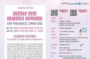 [경기헤드라인=문수철 기자] 인천광역시는 역량 있는 여성 인재를 발굴하고 육성하기 위해 인하대학교 평생교육원과 함께 ‘2025 인천 여성리더 아카데미’ 두 번째 전문・특화과정인 ‘건강관리 아카데미’ 교육생을 모집한다고 밝혔다. 이번 과정은 건강과 웰빙을 중심으로 지속 가능한 미래를 준비할 여성리더 양성에 중점을 두고 있으며, 전문가 특강, 건강관리 강의, 현장 견학 등 다양한 학습과 실습을 통해 교육생들이 직접 체험하며 역량을 키울 수 있도록 구성됐다. 특히 ‘인천시와 함께하는 생생 시정 현장견학’ 프로그램을 통해 교육생들이 인천시 정책과 시정 현장을 직접 경험할 수 있는 기회도 제공한다. 모집 대상은 ▲인천시에 거주하는 여성 ▲인천시 관내 직장 여성 ▲인천 소재 학교의 재학생 및 졸업생으로, 총 60명을 선발한다. 접수는 오는 10월 22일까지 진행되며, 교육은 10월 25일부터 11월 8일까지 수요일과 토요일 인하대학교 평생교육원에서 열린다. 앞서, 지난 5월과 9월에는 ‘2025 인천 여성리더 아카데미’ 기본과정과 문화·예술 분야 전문특화과정(Ⅰ)을 통해 각각 60명과 80명의