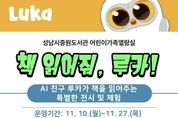 [경기헤드라인=문수철 기자] 성남도시개발공사 중원도서관은 지역 어린이들에게 인공지능(AI) 기술을 활용한 새로운 독서 체험 기회를 제공하기 위해 ‘책 친구 로봇, 루카(LUKA)’를 오는 12월까지 운영한다고 21일 밝혔다. ‘루카’는 책 표지를 인식해 음성으로 내용을 읽어주는 인공지능 독서로봇으로, 유아와 어린이가 스스로 책을 읽고 들으며 독서의 즐거움을 느낄 수 있도록 돕는 AI 독서학습 보조기기다. 이번 사업은 루카를 활용한 전시와 기관 협력 프로그램을 통해 어린이들에게 친숙하고 흥미로운 독서 경험을 제공하고자 마련됐다. 먼저 중원도서관에서는 한 달간 ‘책 읽어줘! 루카’ 전시가 진행된다. 어린이·가족열람실에 루카와 전집을 함께 비치해, 어린이들이 직접 로봇을 체험하며 자연스럽게 책 읽는 즐거움과 호기심을 느낄 수 있도록 운영된다. 시민 누구나 자유롭게 참여 가능하며, AI 기술과 독서가 결합된 혁신적인 독서문화를 체험할 수 있는 특별한 기회를 제공한다. 또한, 도서관 밖에서도 아이들이 책과 만날 수 있도록 ‘책 나들이 ON 루카’ 협력 프로그램을 진행한다.