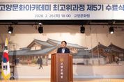 [경기헤드라인=김홍량 기자] 지난 26일, 고양문화원에서 열린 ‘고양문화아카데미 최고위과정’제5기 수료식에 이동환 고양시장이 참석해 6개월간의 대장정을 마친 수료생들을 격려하고, 지역 리더로서의 새로운 출발을 축하했다. 지난 2023년 9월 첫발을 뗀 문화아카데미는 이번 5기 수료생을 포함해 현재까지 총 180여 명의 지역 리더를 배출하며, 고양특례시의 지성과 인문학적 통찰을 상징하는 전당으로 확고히 자리 잡았다. 이날 수료식에는 이동환 고양특례시장을 비롯해 선배 수료생 등 100여 명이 참석하여, 배움의 결실을 맺은 5기 수료생들을 아낌없이 축하했다. 이번 문화아카데미 과정에는 기업 CEO, 공직자, 법조인 등 지역사회의 다양한 리더들이 참여해 수준 높은 지적 교류를 나누며 탄탄한 인적 네트워크를 구축했다. 특히 유현준 홍익대 교수, 신병주 건국대 교수, 김민식 세명대 교수 등 국내 최고 수준의 강사진을 통한 이론 강의는 물론, 문화유산 답사와 미술관 견학, 뮤지컬 관람 등 현장 경험을 아우르는 입체적인 융복합 커리큘럼이 진행돼 수강생들에게 큰 호응을 얻었다. 수료식에 참석한 이동환