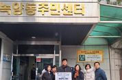 [경기헤드라인=문수철 기자] 의정부시 고산동주민센터는 2월 10일 고산동 소재 나아가는교회가 저소득층 지원을 위해 성금 30만 원을 기탁했다고 밝혔다. 이날 전달식은 주민센터에서 열렸으며, 박재현 전도사가 대표로 참석했다. 나아가는교회는 최근 고산동에 새롭게 개소했다. 박재현 전도사는 “작은 정성이지만 지역 이웃을 위한 나눔에 동참할 수 있어 뜻깊게 생각한다”며 “앞으로도 주민들과 소통하며 봉사와 나눔 활동을 이어가겠다”고 전했다. 이봉득 동장은 “나눔에 동참해 주신 나아가는교회에 감사드린다”며 “기탁된 성금은 도움이 필요한 곳에 사용하겠다”고 말했다.