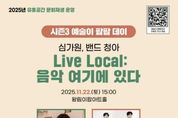 [경기헤드라인=문수철 기자] 의왕시 이팝아트홀(의왕시 왕곡로74)이 11월 22일 오후3시, 지역 예술인들이 함께 꾸미는 음악 축제 ‘Live Local:음악, 여기에 있다’를 개최한다. 이번 공연은 지역의 숨은 전문예술인을 발굴·지원하고 예술인 간 네트워크를 형성하기 위해 기획된 무대로, 시민들이 일상 속에서 가까이 음악을 즐길 수 있는 특별한 시간을 선사한다. 무대에는 의왕을 중심으로 활동 중인 밴드 ‘청아’와 싱어송라이터 ‘심가원’이 출연한다. 두 아티스트는 자신만의 감성과 음악 세계를 바탕으로 도시의 일상과 청춘의 순간들 따뜻한 멜로디로 풀어낼 예정이다. 밴드 ‘청아’는 서정적이면서도 에너지 넘치는 사운드와 깊이 있는 보컬, 따뜻한 선율로 관객의 공감을 이끌 예정이다. 심가원은 진솔한 가사와 부드러운 음색으로 사람 사이의 감정을 노래하며 공감을 전한다. 윤은숙 의왕시 문화관광과장은 “이번 공연은 지역 예술인들이 주체가 되어 시민과 호흡하는 뜻깊은 무대”라며 “많은 분들이 지역에서 피어나는 예술의 생동감을 즐기셨으면 좋겠다”고 말했다.