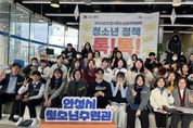 [경기헤드라인=문수철 기자] 안성시청소년수련관은 지난 12월 6일 ‘안성시청소년참여위원회’가 1년간 준비한 청소년 정책을 발표하는 ‘청소년 정책 톡!톡!’ 행사를 개최했다. 이날 행사에는 16명의 청소년참여위원회 위원을 비롯해 안성시장, 안성시 청소년 30여 명이 참석해 청소년이 직접 제안한 정책에 대해 논의하는 뜻깊은 시간을 가졌다. 청소년참여위원회는'청소년기본법' 제5조의2에 근거해 설치된 제도적 기구로, 청소년 정책 추진 과정에 청소년이 직접 참여하도록 마련된 장치다. 안성시는 매년 9~24세 청소년을 공개 선발해 청소년이 정책 수립 과정에 직접 참여할 수 있도록 지원하고 있다. 2025년 청소년참여위원회 위원들은 기존 청소년 정책 모니터링과 새로운 정책 제안을 위해 지역 축제·행사 등에 참여해 청소년 욕구 조사를 진행했으며, 매월 정기회의와 워크숍을 통해 안성시 청소년을 대표하는 정책을 마련하기 위해 노력해 왔다. 이번 행사에서는 ▲청소년 건강을 위한 학생 아침 간편식 모니터링 ▲청소년 진로 고민 해결을 위한 진로체험교육 모니터링을 통해 기존 정책의 현황과 개선 방안을 발표했다. 또한 신규