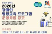 [경기헤드라인=문수철 기자] 안성시는 성인 장애인의 평생학습 권리를 보장하고 평생교육 참여 기회를 확대하기 위하여 경기도와 안성시가 함께 지원하는 '2026년 장애인 평생교육 프로그램 운영' 공모사업을 추진한다. 이번 공모사업은 성인 장애인을 위한 맞춤형 평생교육 프로그램을 발굴‧지원하여 사회참여 기회를 넓히고, 누구나 차별 없이 배움의 기회를 누릴 수 있는 평생학습 환경을 조성하는 데 목적이 있다. 신청 대상은 안성시에 주소(등록)를 둔 장애인 평생교육 기관‧단체이며, 신청 기간은 12월 2일부터 16일까지이다. 모집 규모는 ▲평생교육법 제7진 분류를 기반으로 한 ‘장애인 평생교육 프로그램’ 1개소와 ▲'장애인복지법'에 따른 15개 장애 유형 분류를 기반으로 한 ‘장애유형별 평생교육 프로그램’ 2개소, 총 3개소이다. 선정된 프로그램은 2026년 2월부터 10월까지 운영될 예정이다. 공모사업에 대한 자세한 내용은 안성시청 누리집 및 안성배움e 누리집에 게시된 공고문을 통해 확인할 수 있으며, 신청 서류 또한 해당 누리집에서 내려받을 수 있다. 시 관계자는 “이번 사업을 통해 성인 장애인의 평생학습