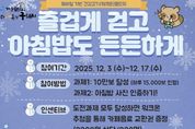 [경기헤드라인=문수철 기자] 구리시는 시민들의 건강한 생활 습관 형성을 위해 ‘즐겁게 걷고, 아침밥도 든든하게’ 챌린지를 오는 12월 3일부터 17일까지 15일간 운영한다고 밝혔다. 아침 식사는 신체 에너지 공급과 집중력 향상에 도움을 주는 중요한 생활 습관으로, 구리시보건소는 이번 캠페인을 통해‘걷기 + 아침 식사’라는 건강한 아침 루틴을 시민들에게 확산시키고자 한다. 참여자는 워크온(WalkOn) 앱을 활용해 본인의 걸음 수를 확인하고, 미션형 걷기 챌린지를 비롯해 지역 기반 커뮤니티 활동 및 경품 이벤트에 참여할 수 있다. 챌린지 참여 방법은 ▶ 워크온 앱 설치 ▶ 구리시 공식 커뮤니티 ‘즐거운 걷기, 더 행복한 건강생활’ 가입 ▶ 챌린지 기간 10만 보의 걸음 수 달성▶ 아침 식사 사진 인증의 순서로 진행된다. 챌린지는 구리 시민이면 누구나 참여할 수 있으며, 임무를 완수한 참가자 중 추첨을 통해 200명에게 모바일 음료 쿠폰이 제공될 예정이다. 백경현 구리시장은 “아침 식사와 걷기는 건강의 기본이자 하루의 활력을 높이는 가장 간단한 방법”이라며 “이번 챌린지를 통해 시민들이 일