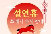 [경기헤드라인=김홍량 기자] 고양특례시 일산서구는 설 연휴 기간 주민 불편을 최소화하고 쾌적한 도시환경을 유지하기 위해 오는 14일부터 18일까지 5일간 생활폐기물 관리대책을 추진한다. 구는 ▲비상근무체계를 통한 신속한 청소행정 서비스 제공 ▲재활용품 분리배출·생활폐기물 감량 홍보 ▲연휴 기간 수거일 사전 안내 등을 실시해 올바른 쓰레기 배출을 유도할 방침이다. 이달 14일과 18일을 집중 수거일로 지정해 생활폐기물과 음식물 관련 폐기물을 정상 수거하고, 설 연휴 기간인 2월 15일부터 17일까지는 수거를 중단한다. 이에 따라 연휴 기간 중 생활쓰레기 배출 자제와 수거 일정 조정사항을 사전 홍보할 계획이다. 또한 연휴 기간, 총 17명 규모의 청소대책 상황반과 대응반을 편성·운영해 생활쓰레기 관련 민원과 무단투기 신고에 신속히 대응하고 쓰레기 투기 상습지역을 중심으로 순찰과 집중 수거를 병행한다. 구 관계자는 “설 연휴에도 주민들이 불편 없이 쾌적한 환경에서 명절을 보낼 수 있도록 청소행정 운영에 최선을 다하겠다”며 “주민들께서도 수거일을 준수하고 올바른 분리배출과 쓰레기 감량에 적극 협조해 주시길