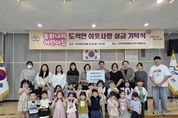[경기헤드라인=정현수 기자] 광주시 도척면에 위치한 동화나라어린이집은 지난 22일 학부모와 원아 30여 명이 함께 도척면 행정복지센터를 방문해 프리마켓 수익금 145만 3천 원을 어려운 이웃을 위해 써달라며 전달했다. 이번 성금은 지난 6월 27일 어린이집에서 지역 주민과 함께 개최한 프리마켓(바자회)에서 발생한 수익금에 교사들과 원아들이 십시일반 모은 기탁금을 더해 마련됐다. 장경임 원장은 “매년 어린이집에서 프리마켓을 열어 수익금을 기탁하고 있는데 아이들이 이 과정을 통해 어려운 이웃을 배려하고 나눔의 의미를 배우는 것 같다”며 “앞으로도 아이들이 따뜻한 마음을 가진 어른으로 성장할 수 있도록 최선을 다하겠다”고 말했다. 이에 대해 고형근 면장은 “이웃을 위해 지속적으로 나눔을 실천해 주시는 동화나라어린이집 원장님과 학부모님들께 깊이 감사드린다”며 “전달해 주신 성금은 지역의 어려운 이웃들을 위해 소중히 사용하겠다”고 전했다. 한편, 동화나라어린이집은 2018년부터 매해 프리마켓을 열어 수익금을 기탁하며 지역사회의 교육기관으로서 나눔과 실천의 모범을 보이고 있다.
