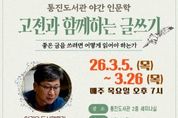 [경기헤드라인=문수철 기자] 김포시 통진도서관은 고전 중심의 독서법과 글쓰기를 알려주는 야간 인문학 프로그램 ‘고전과 함께하는 글쓰기’를 오는 3월 5일부터 3월 26일까지 매주 목요일 오후 7시에 통진도서관 세미나실에서 운영한다고 밝혔다. '고전 한 책 깊이 읽기'의 저자 이권우는 ‘고전과 함께하는 글쓰기’를 통해 맹자의 철학과 중용을 깊이 있게 다루며, 책을 읽으면서 생각을 확장하는 독서법과 단락 중심의 글을 쓰는 방법을 총 4회차에 걸쳐 진행한다. 회차별 주제는 ▲고전 속 맹자의 철학 ▲맹자가 알려주는 우리 시대의 관계성 ▲글쓰기가 쉬워지는 독서법 ▲글쓰기의 첫걸음이다. 참여를 원하는 경우 오는 2월 10일 오전 10시부터 통진도서관 누리집 또는 전화로 신청할 수 있으며, 고전과 글쓰기에 관심있는 성인 20명을 선착순으로 모집한다.