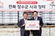 [경기헤드라인=문수철 기자] 안양시는 전북 장수군으로부터 지역 특산물인 사과 500박스(1,500만원 상당)를 기부받아 관내 사회복지시설에 전달했다고 24일 밝혔다. 이번 기부는 양 도시의 친선 결연 29주년을 기념해 청정 자연 속에서 재배한 우수 농산물을 널리 알리고, 도농 교류 협력을 강화하기 위해 마련됐다. 23일 오후 1시40분 안양시청 본관 앞에서 열린 전달식에는 최대호 안양시장과 최연수 장수사과원예농협협동조합장, 조합 이사 및 관계 공무원 등이 참석했다. 23~24일 안양시청 청사 내에서는 조합 주관으로 장수 사과 시식 및 홍보, 판매 행사가 열렸다. 시는 기부받은 사과를 사회복지시설 26곳에 전달해 추석을 맞아 어려운 이웃들과 풍성한 수확의 기쁨을 함께 나눴다. 시는 장수군과 친선 결연의 의미를 돈독히 하며 지역 농특산물 홍보에도 적극 협력할 계획이다. 최대호 안양시장은 “장수군의 따뜻한 마음과 정성이 담긴 기부에 깊이 감사드린다”면서 “앞으로도 도농 상생의 가치 실현을 위해 다양한 교류 협력을 이어 가겠다”고 말했다.