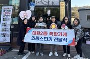 [경기헤드라인=문수철 기자] 오산시 대원2동 행정복지센터는 지난 13일, 2026년 첫 번째 착한가게로 신규 선정된 ‘양심장어 오산청호점(엘지로 230)’에서 ‘착한날개(착한가게) 인증스티커 전달식’을 개최했다고 밝혔다. 이날 전달식에는 김소영 대원2동장을 비롯해 양심장어 오산청호점 대표와 지역사회보장협의체 위원 4명 등이 참석해 나눔의 의미를 함께 나누는 시간을 가졌다. 양심장어 오산청호점은 매월 약 25만 원 상당의 장어탕을 정기적으로 후원하기로 약속했으며, 후원 물품은 식생활에 어려움을 겪고 있는 관내 취약계층에게 전달돼 따뜻한 한 끼와 함께 지역사회의 온정을 전할 예정이다. 양심장어 오산청호점 대표는 “주변의 어려운 이웃들에게 작은 보탬이 되기를 바라는 마음으로 후원을 결정했다”며 “이번 나눔이 취약계층에게 따뜻한 식사가 되길 바라며, 앞으로도 지속적인 나눔 활동에 함께하겠다”고 말했다. 김소영 대원2동장은 “어려운 여건 속에서도 정기적인 나눔을 실천해 주신 양심장어 오산청호점에 깊이 감사드린다”며 “착한가게 참여가 지역사회 전반에 나눔 문화로 확산될 수 있도록 행정적 지원과 노력을 이어가겠