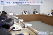 [경기헤드라인=문수철 기자] 수원시 노사민정협의회는 11일 수원시청 상황실에서 2026년 제1차 수원시 노사민정협의회 정기회의를 열고, ‘2026년 수원시 노사민정 공동선언’을 채택했다. ▲임금체불 및 불법행위 근절 ▲노동자의 안전 보장과 건강 보호 ▲양질의 일자리 창출과 미래지향적 노동시장 구축 ▲사회적 약자 보호·안전망 강화 등을 주요 과제로 담았다. 또 인공지능(AI) 확산 등 산업구조 변화에 대응해 ‘수원형 노동시장’ 구축을 위한 사회적 대화를 확대하고, 노동자 등 취약계층 보호를 위한 시스템 구축에 적극적으로 협력하기로 했다. 이날 회의에서는 2026년 노사민정 공동선언을 채택·의결하고 김도형 경기지방고용노동청장을 신규 위원으로 위촉했다. 또 2026년 노사민정협력 활성화 사업 추진 계획을 심의하고, 고용·노동 현안 의제를 선정했다. 수원시 노사민정협의회는 올해 ▲협의회 인프라 구축 ▲홍보 콘텐츠 제작 ▲노사민정 협력 활성화 지원사업 ▲사회적 대화 기능 강화 ▲노동복지119 운영 등 사업을 추진할 예정이다. 수원시 노사민정협의회 위원장인 이재준 수원특례시장은 “노동 취약계층 보
