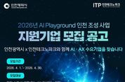 [경기헤드라인=문수철 기자] 인천테크노파크(인천TP)는 지역 중소기업의 인공지능 전환(AX) 촉진과 산업 경쟁력 강화를 위해 ‘2026년 AI 플레이그라운드 인천 조성사업’의 참여기업을 오는 30일까지 모집한다고 밝혔다. 이번 사업은 AI와 AX 관련 기업 총 39개사를 선정해 지원할 예정이며, 선정된 기업에는 프로그램에 따라 기업당 최대 1억 원의 사업비가 지원된다. 세부 프로그램은 ▲AI 기술개발 ▲AI 사업화 ▲AX 컨설팅 ▲AX 전환지원(AI 내재화) 등 4개 트랙으로 구성된다. 모집 대상은 인천 관내 중소기업으로, AI 기술 보유 단계나 도입 희망 여부에 따라 적합한 프로그램을 선택해 신청할 수 있다. 지원 신청은 오는 4월 30일 오후 5시까지이며, 비즈오케이(Biz-OK) 또는 인천R&D관리시스템을 통해 온라인으로 접수하면 된다. 다만, 프로그램별로 접수 기간이 다를 수 있어 공고문을 반드시 확인해야 한다. 자세한 내용은 인천TP 홈페이지 지원사업 게시판을 확인하거나, AI혁신센터로 문의하면 된다. 인천TP 관계자는 “이번 사업은 인천의 중소기업들이 급변하는 산