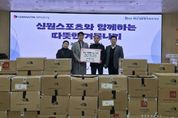 [경기헤드라인=문수철 기자] 지난 11일, 스포츠 유통회사인 ㈜신원스포츠는 연말을 맞아 지역사회 취약계층을 지원하기 위해 의류 및 용품 900장(5천만원 상당)을 하남시종합사회복지관에 기탁했다. 이날 하남시종합사회복지관에서 열린 기탁식에는 조연식 복지국장을 비롯하여, 황원식 대표, 김성수 경기도의원이 함께 참석했다. 황원식 대표는 “추운 겨울을 보내는 어려운 이웃들에게 조금이나마 도움이 되길 바라는 마음으로 기탁을 결정했다”며, “앞으로도 따뜻한 나눔 활동을 이어가겠다”라고 기탁 소감을 밝혔다. 조연식 복지국장은“따뜻한 나눔을 실천해준 ㈜신원스포츠에 감사드리며, 겨울철이 다가오면서 도움이 필요한 분들이 많아지고 있는데 이번 방한용품이 큰 보탬이 될 것으로 기대된다”라고 감사 인사를 전했다. 한편, 이번에 기탁된 성품은 하남시종합사회복지관을 통해 한부모가정, 취약아동 등에게 전달되어, 겨울철 생활에 실질적인 도움이 될 예정이다.