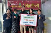 [경기헤드라인=문수철 기자] 남양주시는 9일 금곡동 소재 ㈜서울빙과총판이 진건읍 위기가구를 위한 후원금 300만 원을 전달했다고 밝혔다. 이번 후원은 진건읍 지역사회보장협의체가 연말연시를 맞아 운영 중인‘진건읍, 사랑의 나눔존 나눔트리’나눔 릴레이의 일환으로 추진됐다. 전달된 후원금은 경기사회복지공동모금회를 통해 진건읍 지역사회보장협의체로 지정 기탁되며, 2026년부터 위기가구 신속 응대 사업 ‘바로지원 꾸러미’에 활용된다. 이 사업은 위기 상황에 놓인 가구에 식료품 등 꾸러미를 신속하게 전달해 일시적인 위기를 완화하고 생활 안정을 도모하는 것을 목표로 한다. 엄관용 대표는 “지역사회와 함께 성장해 온 기업으로서 어려운 이웃에게 실질적인 도움을 되고자 후원을 했다”며 “이번 후원이 위기가구를 위한 신규 사업에 활용된다고 생각하니 더욱 뜻깊다”고 전했다. 김학철 진건퇴계원행정복지센터장은 “민간의 따뜻한 나눔이 위기가구를 신속히 지원하는 중요한 밑거름이 된다”며 “앞으로도 민관협력을 바탕으로 촘촘한 복지 안전망을 구축해 나가겠다”고 말했다. 박현정 진건읍 지역사회보장협의체 위원장은 “이웃을