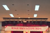 [경기헤드라인=문수철 기자] (사)대한노인회 하남시지회는 9일 노인복지관 2층 대강당에서 이현재 하남시장을 비롯한 각 경로당 회원과 수강생 등 400여명이 참석한 가운데 제36기 노인대학 개강식 행사를 가졌다. 이날 개강식은 공식행사와 함께 노인대학에 대한 교육안내 등 오리엔테이션으로 다채롭게 진행됐다. 노인대학 강좌는 ▲건강프로그램으로 헬스, 요가, 건강체조, 실버댄스, 실버합창, 노래교실 ▲전통프로그램으로 고고장구, 한국무용, 난타반 ▲교양프로그램으로 한글교실, 영어교실, 생활영어, 기타교실, 수채화교실, 컴퓨터교실(2개반), 캘리그래피, 서예 등 18개 강좌로 12월까지 진행된다. 하남시 노인대학은 1989년 제1기로 노인대학을 개설하여 (사)대한노인회 하남시지회에서 주관하여 운영한다 이현재 시장은 이날 축사를 통해 "노인대학 개강식을 축하드리며 배움을 향한 끝없는 도전에 깊은 존경을 표한다"며 "노인대학을 통해 행복한 노후생활에 보탬이 되길 바란다"고 말했다.