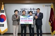 [경기헤드라인=문수철 기자] 용인특례시는 3일 시청 컨벤션홀에서 ‘희망 2026나눔캠페인 사랑의 온도탑제막식 및 사랑의 열차 이어달리기 발대식’을 개최했다. 사랑의 온도탑은 용인의 대표 연말연시 이웃돕기 운동인 ‘사랑의 열차 이어달리기’ 모금 현황을 누구나 알 수 있게 알리고, 나눔 문화를 확산하기 위해 시청 1층 로비에 마련됐다. 올해 ‘사랑의 열차 이어달리기’는 내년 2월 6일까지 총 68일 동안 14억원의 이웃돕기 성금 모금을 목표로 진행된다. 모금액 목표액의 1%(1400만원)이 달성될 때 마다 사랑의 온도탑의 온도는 1℃씩 올라간다. 행사에는 이상일 용인특례시장과 권인욱 경기사회복지공동모금회 회장을 비롯해 지역내에서 나눔활동에 적극 참여하고 있는 봉사단체, 종교인, 기업인 등 약 50여명이 참석했다. 이상일 시장은 “경기가 어려워 나눔활동이 확산되기 어려운 상황이지만, 어려운 이웃을 돕기 위한 모금 목표를 지난해 대비 1억원이 증가한 14억원으로 설정했다”며 지난해 13억원을 목표로 ‘사랑의 열차 이어달리기’ 모금 활동을 펼친 결과 17억 7000만원이 모일 정도로 용인에서는 따뜻한 마음과