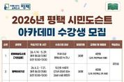 [경기헤드라인=문수철 기자] 평택시는 2026년 ‘평택 시민도슨트 아카데미’ 학습자를 3월 19일부터 4월 6일까지 모집한다고 밝혔다. ‘평택 시민도슨트 아카데미’는 평생학습과 문화예술교육을 접목해 시민이 평택을 이해하고, 시민 눈높이에서 지역을 해설할 수 있는 문화예술교육 활동가로 성장하도록 돕는 사업이다. 이번 아카데미는 ▲개강특강 ▲문화예술도슨트(기초입문) 과정 ▲평택이야기꾼 과정 등 3개 과정으로 운영된다. ‘평택 시민도슨트 아카데미’의 시작을 알리는 ▲개강특강은 4월 7일(화) 오후 7시부터 평생학습센터 북부학습공간 1층 대강당에서 열린다. 이창용 도슨트를 초청해 ‘평택은 예술이다. 나도 시민도슨트!’를 주제로 도슨트의 역할과 지역을 예술로 바라보는 관점을 소개할 예정이다. ▲‘문화예술도슨트(기초입문) 과정’은 4월 14일부터 총 12회로 운영되며, 동서양미술사와 현대미술의 핵심을 이해하고 전시 해설의 기초를 익히는 과정으로, 1회는 미술관 현장학습으로 진행된다. ▲‘평택이야기꾼 과정’은 6월 2일부터 총 15회로, 초등학교 3학년 사회과 지역화 교과인 ‘우리 고장 평택’을 바탕으로 지역 문화유산 답사 등 현장학습