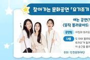 [경기헤드라인=문수철 기자] 인천광역시교육청화도진도서관은 10월 25일 오후 12시 30분, 평생학습1실에서 찾아가는 문화공연 ‘요기조기 음악회’를 개최한다. 이번 공연은 인천문화재단이 주관하는 ‘삶의 일상 공간 예술화 프로젝트’의 일환으로 문화와 예술이 일상이 되는 즐거운 도시 인천을 구현하기 위해 마련됐다. 공연에는 ‘아침의 트리오’가 참여해 두 대의 플루트와 한 대의 피아노로 구성된 편안하고 싱그러운 음악을 선보일 예정이다. 참여 신청은 10월 15일 오전 9시부터 화도진도서관 누리집에서 가능하며 자세한 사항은 화도진도서관 독서문화과로 문의하면 된다.