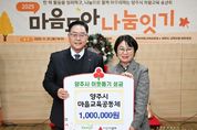 [경기헤드라인=김윤종 기자] 양주시가 지난 24일 양주별산대놀이체험장에서 열린 양주시 교육자원 네트워크 마을교육공동체 송년회에서 이웃돕기 성금 100만 원을 전달받았다. 이날 전달식에는 마을교육공동체 활동가와 관계자 40여 명이 참여해 나눔의 의미를 더했으며, 전달된 성금은 경기 사회복지공동모금회를 통해 관내 저소득 취약계층 위기청소년에게 전달될 예정이다. 마을교육공동체 관계자는 “지역 아이들이 더 안전하고 건강하게 성장할 수 있도록 작은 마음을 모았다”며 “앞으로도 지역 교육을 위해 지속적인 실천을 이어가겠다”고 뜻을 전했다. 강수현 양주시장은 “시민들이 마음을 모아 지역 교육을 함께 만들어가는 과정 자체가 큰 의미”라며, “이런 협력이 쌓여 양주시의 미래를 더 단단하게 만들 것이라 믿는다”고 말했다. 마을교육공동체는 학교와 마을이 아이들을 함께 키우고 마을이 아이들의 배움터가 되도록 학교와 마을, 교육청과 지방자치단체 그리고 학부모와 시민사회가 자발적으로 협력하고 연대하는 교육생태계를 말한다.