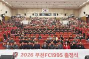 [경기헤드라인=문수철 기자] 부천FC1995가 22일 부천시청에서 2026시즌 출정식을 열고 창단 첫 K리그1 시즌을 앞둔 각오를 시민들과 함께 다졌다. 부천시는 오는 3월 1일 K리그1 개막전을 치르는 구단이 1부리그에서 당당히 경쟁할 수 있도록 지원하는 동시에, 경기 관람과 문화 체험, 소비가 이어지는 ‘스포츠 기반 지역경제 활성화’를 본격화할 계획이다. ◇ 팬·시민 열기로 가득했던 ‘K리그1 첫 시즌 출정식’ 성황 속 마무리 부천FC1995는 이번 출정식에서 사상 첫 K리그1 무대를 앞두고 구단주와 주요 내빈, 프로·유소년 선수단, 시민과 팬들이 한자리에 모인 가운데 출사표를 던졌다. 시청 로비에서는 한지호·백동규·바사니 등 주요 선수들의 팬 사인회와 스톱워치 이벤트, 포토존 등 장외 프로그램이 열려 현장 분위기를 달궜다. 본 행사에서는 김규민·성신·이충현 등 유망주를 꾸준히 배출해 온 유소년 선수단을 시작으로 프로 선수단과 스태프가 차례로 소개됐다. 부천시는 유소년부터 1군까지 이어지는 축구 생태계를 꾸준히 강조해 왔으며, 지난해에는 부천FC1995 U-18팀이 제47회 문화체육관광부장관배 전국고등학교