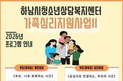[경기헤드라인=정현수 기자] 하남시는 민선 8기 공약사항인 ‘심리상담 프로그램 강화’의 일환으로 청소년 가정의 정서적 안정과 건강한 가족관계 형성을 지원하기 위해 ‘우리가족심리지원사업 시즌Ⅱ’를 확대 운영하고 있다고 밝혔다. 이번 사업은 양육 과정에서 겪는 스트레스와 부모·자녀 간 소통 어려움을 겪는 가정을 지원하기 위해 마련된 것으로, 부모의 정서 회복을 시작으로 양육 역량 강화와 가족 관계 개선까지 이어지는 통합형 심리지원 프로그램이다. ‘우리가족심리지원사업 시즌Ⅱ’는 지난해 운영된 가족심리지원사업의 높은 호응을 바탕으로 확대된 사업으로, 보다 다양한 상담과 프로그램을 통해 실질적인 도움을 제공하는 데 중점을 두고 있다. 먼저 부모(양육자)를 위한 5회기 개인상담 ‘부모, 나로 회복하는 시간’은 3월 16일부터 매주 월요일 운영되고 있으며, 부모가 자신의 감정을 이해하고 양육 과정에서의 스트레스를 완화할 수 있도록 지원한다. 이를 통해 부모의 정서적 안정이 자녀의 심리적 안정으로 이어질 수 있도록 돕는다. 또한 부모 집단상담 ‘공감으로 연결되는 부모의 시간’은 상반기(5월)와 하반기(10월)에