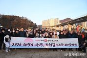 [경기헤드라인=문수철 기자] 의정부시의회는 지난 1일 병오년 새해를 맞아 지역 주민들과 함께 걸으며 희망찬 2026년을 시작할 수 있도록 ‘해맞이 산책, 하천길 따라 새빛정원까지’ 신년 해맞이 행사에 참석했다. 이번 행사는 ▲호원 생활체조광장에서 출발해 ▲신의교~신곡교 중간지점 벽천분수 ▲동오역 생활체조광장 ▲경기도청 북부청사역 인근 벽천분수를 거쳐 ▲신곡새빛정원까지 이어지는 릴레이 산책 코스로 진행됐다. 해맞이 행사에는 시민들과 함께했으며, 15개 동 통장협의회가 행사 준비와 운영에 참여해 중랑천, 부용천 산책로를 걸으며 새해에도 시민들과의 공동체 의식을 함양하고자 마련됐다. 김연균 의장을 비롯한 권안나 부의장과 의정부시장, 의정부시통장협의회 등이 참석했다. 행사에 참석한 의원들은 “희망과 도약을 상징하는 붉은 말의 해를 맞아 시민들과 첫 해맞이를 함께하게 되어 더없이 기쁘다며” “올 한 해 더욱 시민들의 목소리에 귀 기울이고 함께 공감·소통하며, 의정부시의 발전을 이끄는 의정부시의회가 되도록 노력하겠다”고 전했다.