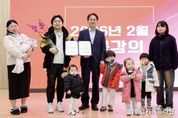 [경기헤드라인=김홍량 기자] 작년에 이어 올해도 고양특례시가 출산장려 유공 가정에 표창을 수여하며 출산 친화 분위기 조성에 앞장서고 있다. 고양특례시는 지난 10일 직원 소통·공감의 날 행사에서 각각 다섯째, 여섯째 자녀를 출산·양육하고 있는 두 가정에 대해 출산장려 유공 표창을 수여했다고 밝혔다. NH농협은행 고양시지부는 두 가정을 응원하기 위한 후원금을 전달했다. 이동환 고양시장은“출산과 양육은 개인의 선택을 넘어 사회 전체가 함께 응원해야 할 가치”라며, “앞으로도 민관이 협력해 출산 친화적인 환경을 조성하고, 아이 키우기 좋은 도시를 만들기 위해 지속적으로 노력하겠다”라고 말했다. NH농협 고양시지부 관계자 역시 “지역사회와 함께 성장하는 기관으로서, 출산과 양육의 가치를 응원하는 데 동참할 수 있어 뜻깊다. 앞으로도 지역 주민과 함께하는 다양한 사회공헌 활동을 이어가겠다”고 밝혔다. 시는 지난해, 출산 친화적인 사회 분위기 확산을 위해 다섯 자녀 이상을 출산·양육하는 모범가정을 선정해 출산장려 유공 표창하는 것을 정례화했으며, 지난해에는 일곱 가정에 표창을 수여한 바 있다.