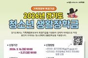 [경기헤드라인=문수철 기자] 의정부시는 3월 16일부터 27일까지 ‘2026년 경기도 청소년 생활장학금’ 사업 대상자를 모집한다. 해당 사업은 기획재정부 복권기금을 재원으로 하고, 국민기초생활보장수급자, 법정 차상위 계층, 법정 한부모(조손)가족 등 생활이 어려운 청소년을 대상으로 중학생(학교 밖 청소년은 2011~2013년생)에게는 연 100만 원, 고등학생(학교 밖 청소년은 2008~2010년생)에게는 연 150만 원을 4월과 9월에 나눠 지급한다. 청소년 본인 또는 보호자가 관할 동 주민센터에 방문하거나 ‘경기민원24’에서 신청할 수 있다. 생활장학금 관련 자세한 사항은 의정부시청 누리집을 참고하거나, 관할 동 주민센터 및 교육청소년과 청소년팀에서 안내받을 수 있다. 이재진 교육청소년과장은 “청소년들이 경제적 어려움 때문에 학업을 중단하는 일이 없도록 계속해서 노력하겠다”고 말했다.